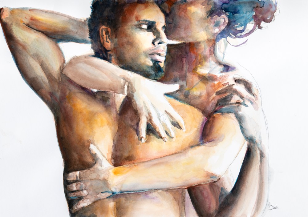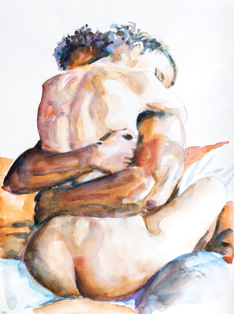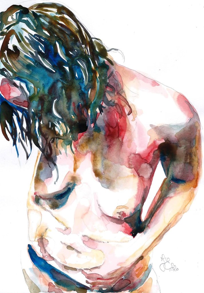 Mes peintures à l’aquarelle sont le reflet de mes émotions. Je choisis minutieusement mes modèles en fonction du lien créé, et me vide de tout autre ressenti négatif lorsque je peins.