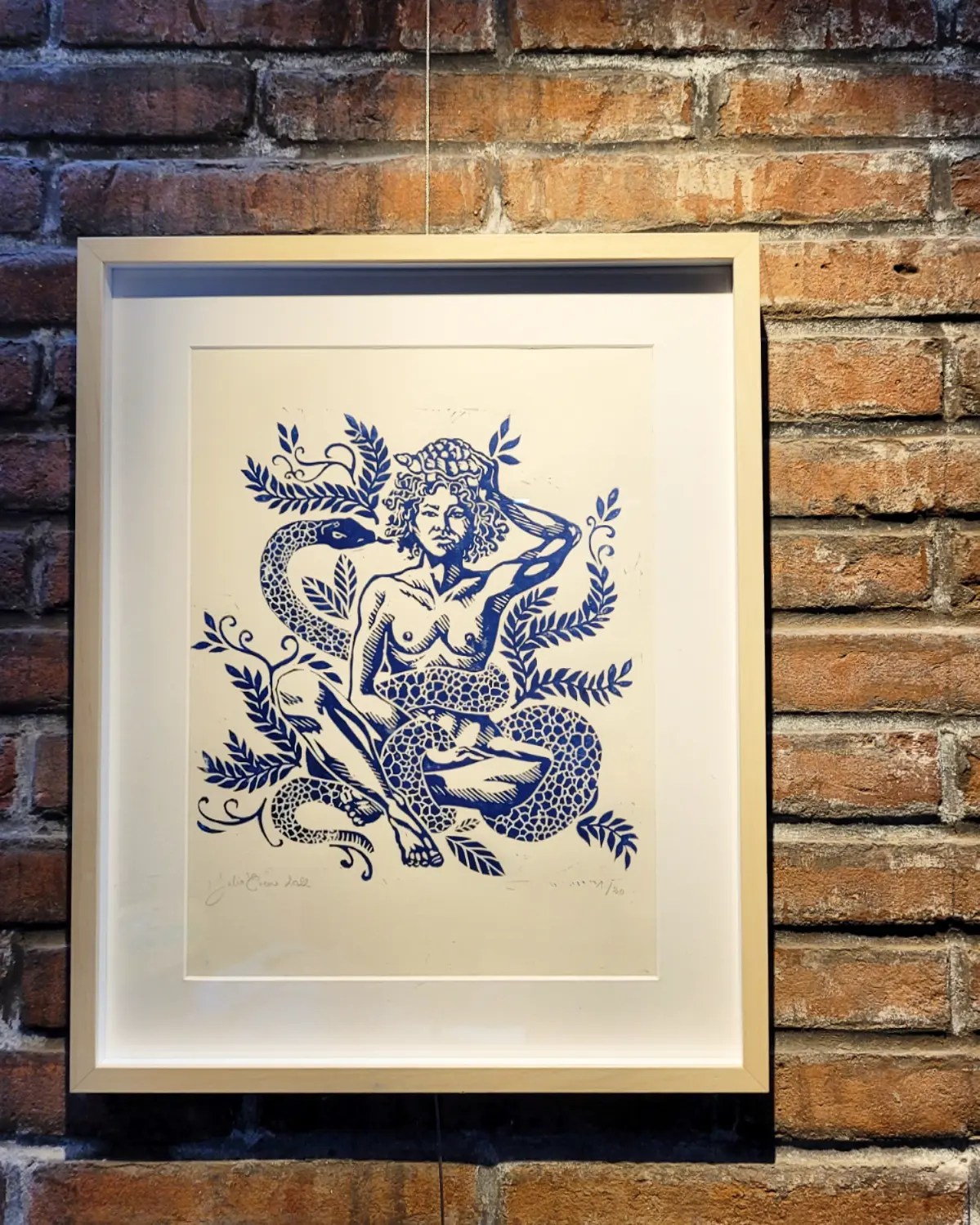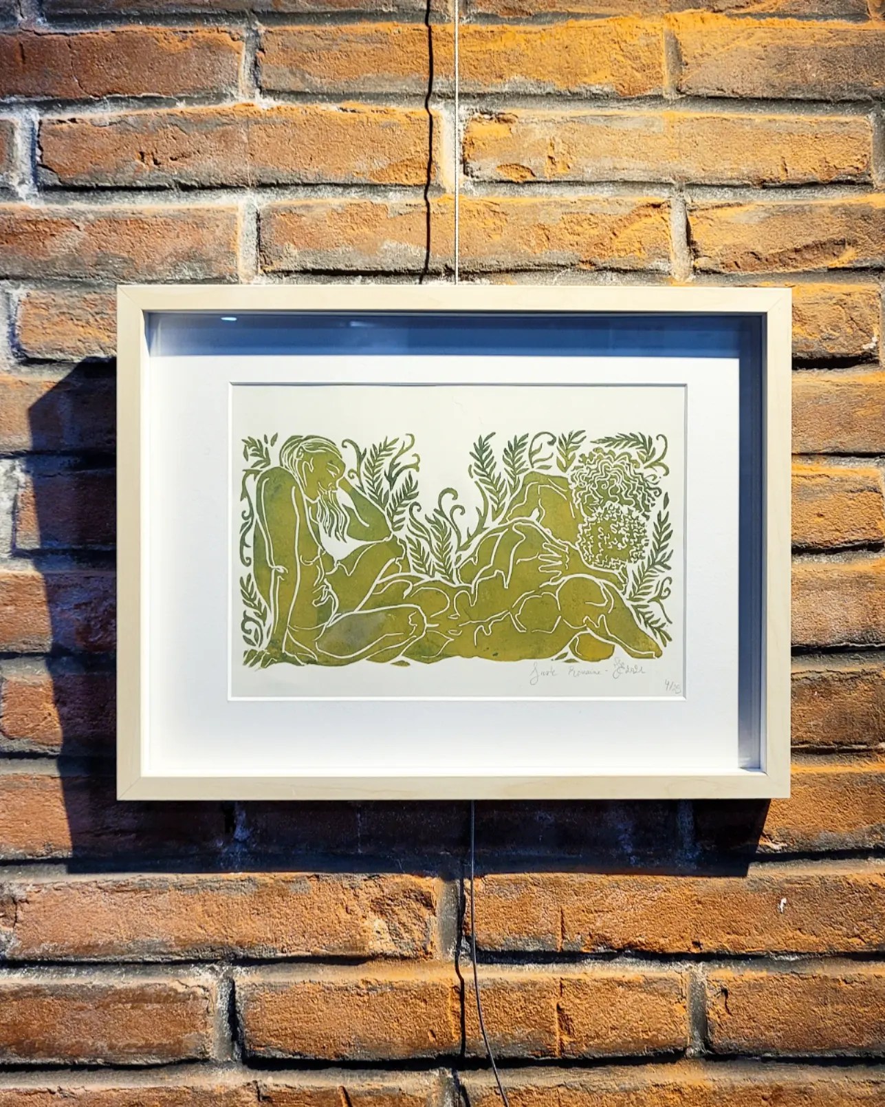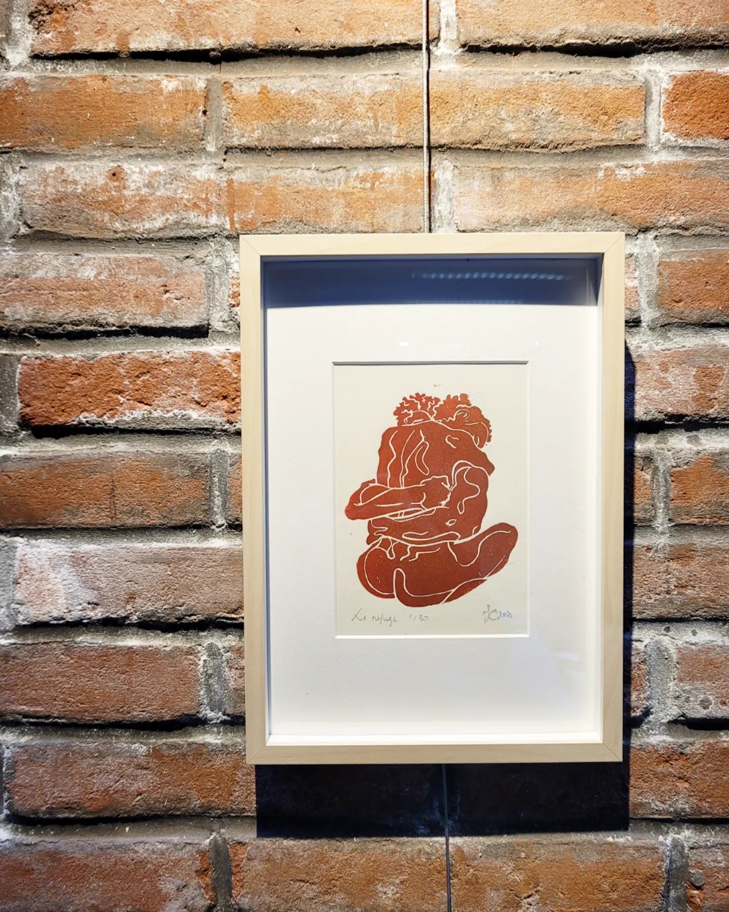 J’ai proposé de l’agrémenter d’autres linogravures de corps, de vases, de plantes et pots de fleurs, qui sont sans aucun doute les mirages grécoromains qui habitent mon esprit du XXIème siècle.