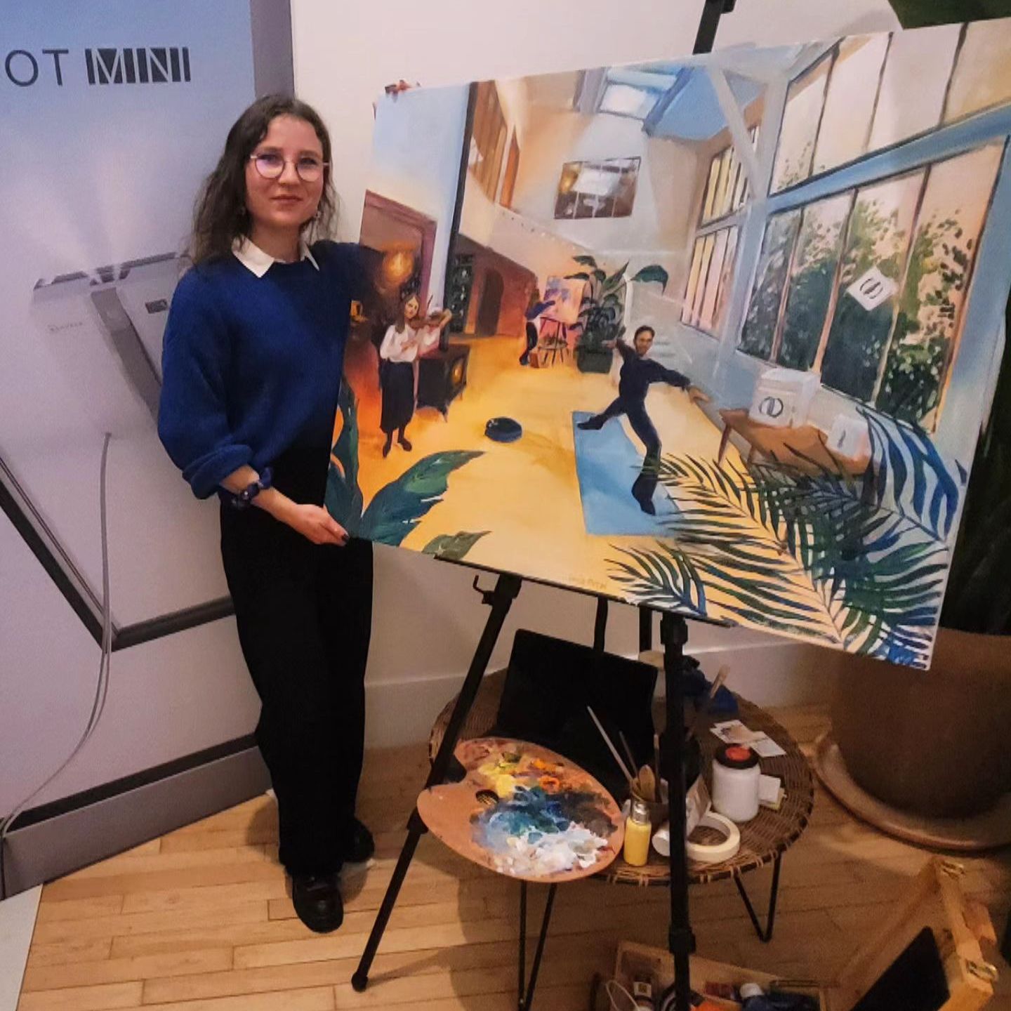 Selon la complexité et la taille de la peinture, il se peut qu’elle ne soit pas totalement terminée et nécessite des retouches en atelier. Dans ce cas, nous prenons rendez-vous pour la livraison définitive de votre œuvre d’art !