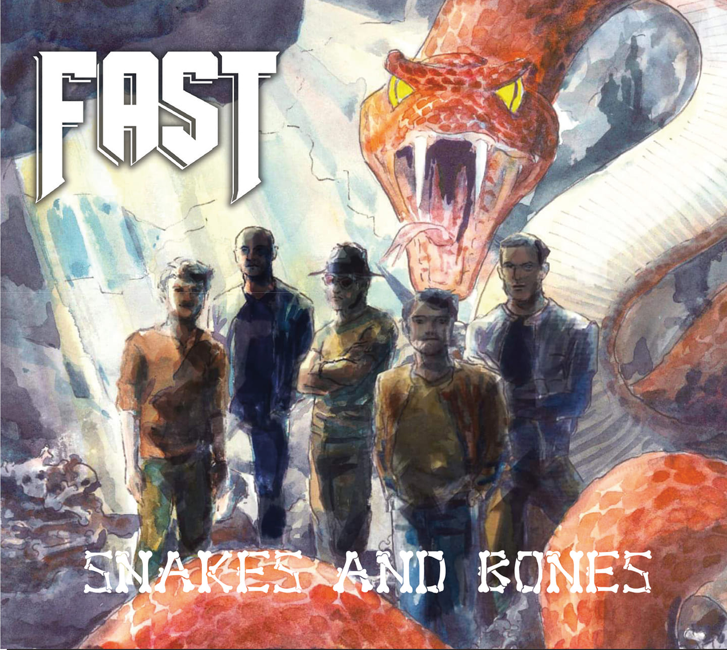Fast est un groupe breton de heavy rock. Pour illustrer la pochette de leur album, les artistes m’ont demandé de réaliser une aquarelle représentant le groupe dans une grotte légèrement éclairée, dans laquelle se trouverait un dangereux serpent.