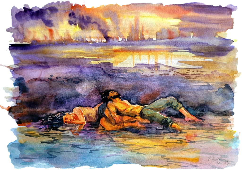Sépal jongle entre espoirs et désespoirs, motivations et procrastinations, mise en scène dans la ville de Toulouse. Pour cet album, j’ai réalisé plusieurs aquarelles qui reflétaient ce déroulement de la journée symbolique, et son lien viscéral aux fleurs et à la douceur.